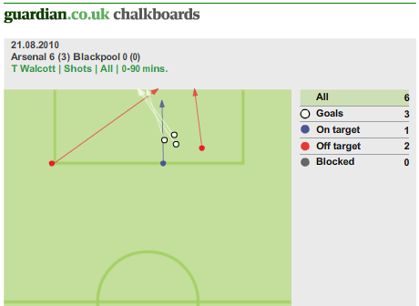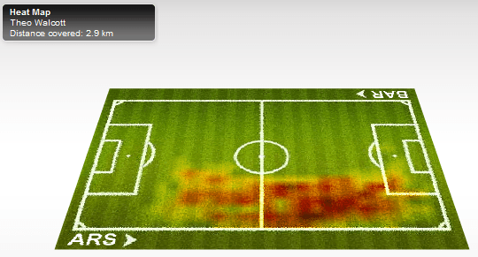 The way I see it, Walcott’s current game is about his runs – speed, timing, and positioning/direction. That’s his biggest strength. Unfortunately, that works only when the opposition allows him enough space as we saw against Blackpool and Blackburn, who were playing a really high line. The same can be said in the first leg against Barca when he did make an impact.